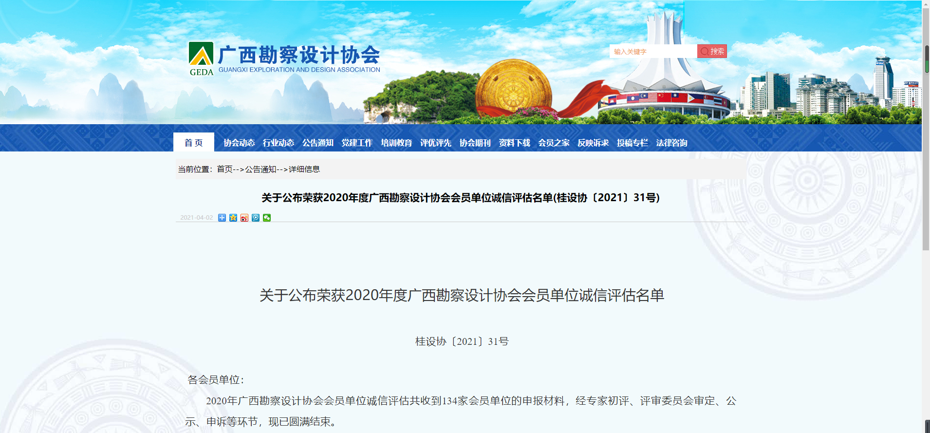 近日,廣西勘察設計協會會員單位誠信評估工作圓滿結束。我公司獲評廣西勘察設計協會AAA級誠信單位,是獲得此次信用評級最高級別的20家單位之一。此外,我公司下屬的廣西金圖工程咨詢有限公司獲評廣西勘察設計協會A級誠信單位,是獲得此次信用評級最高級別的3家審圖機構之一。