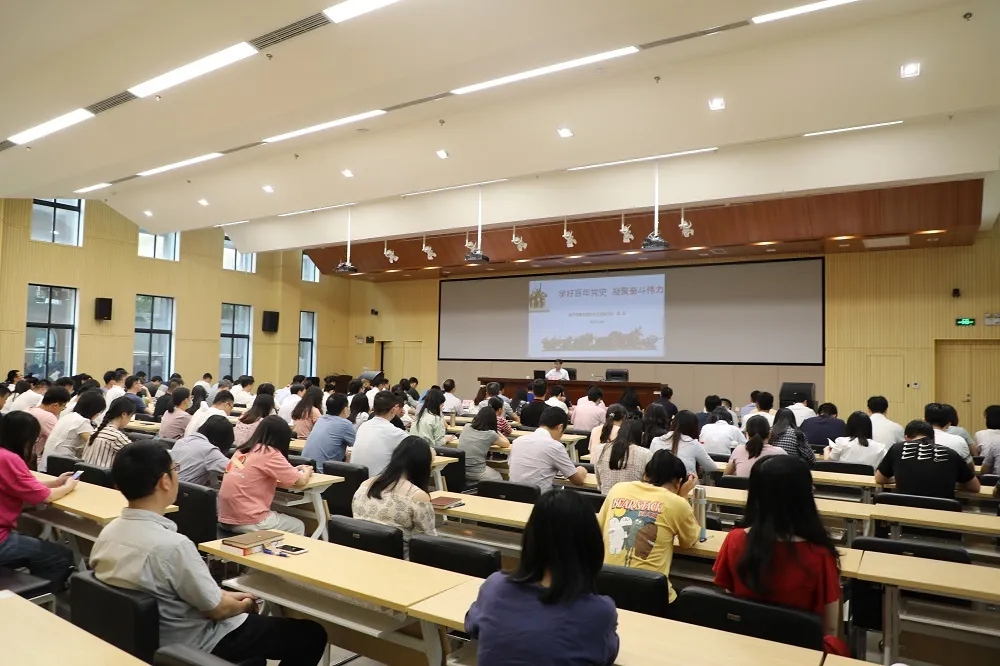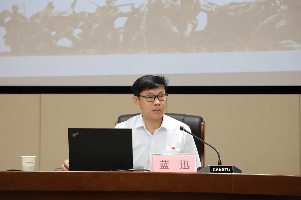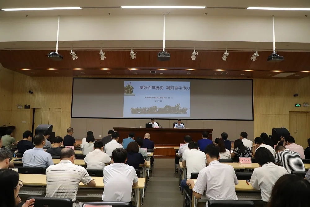 為幫助公司黨員干部更好地理解和開展黨史學習教育,6月24日,公司黨委邀請了南寧市委市直機關工委副書記藍迅為公司黨員干部上了一堂生動的黨史學習教育專題黨課,公司黨委書記韋文學主持會議,公司全體黨員和中層以上領導干部近160余人現場聆聽了專題黨課。